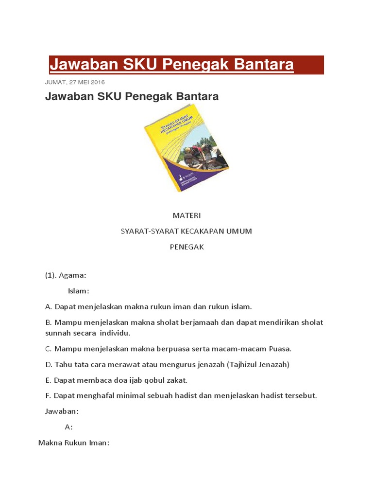 SELAMAT BERJUANG ADIK-ADIK YANG AKAN MELAKUKAN TEST. Dapat menjelaskan makna rukun iman dan rukun islam. JAWABAN SKU PENEGAK BANTARA TERLENGKAP.