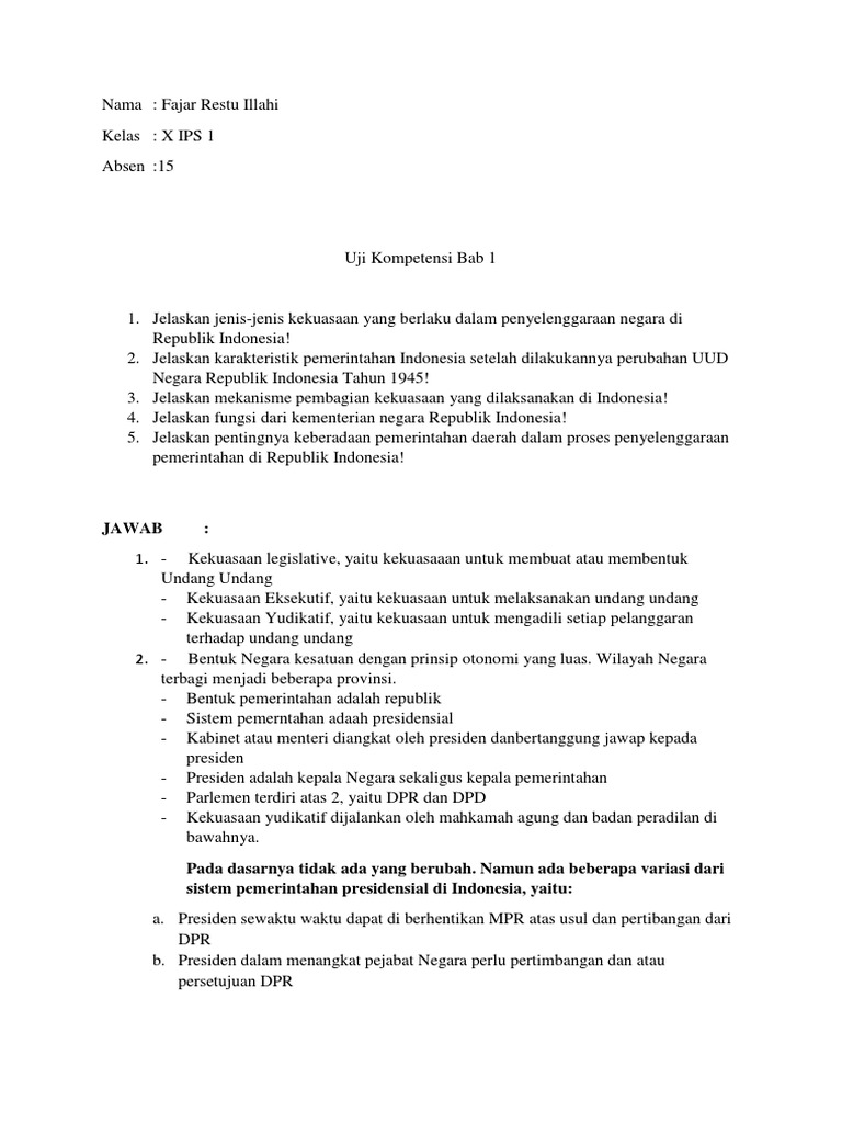 About Press Copyright Contact us Creators Advertise Developers Terms Privacy Policy Safety How YouTube works Test new features Press Copyright Contact us Creators. Jelaskan karakteristik pemerintahan Indonesia setelah dilakukannya perubahan UUD Negara Republik Indonesia Tahun 1945 Jawabannya. Kedaulatan berada di tangan rakyat MPR Majelis Permusyawaratan Rakyat bukan lagi lembaga tertinggi negara.