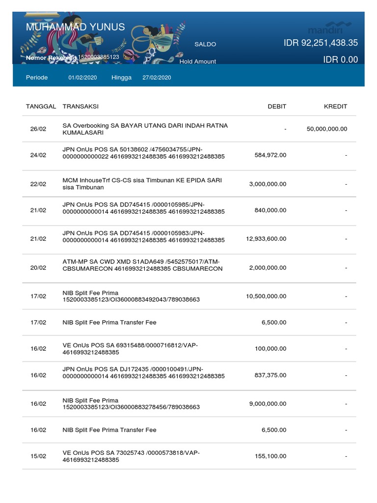 Penarikan uang tabungan melalui ATM. Berikut adalah beberapa istilah yang sering muncul di mutasi rekening mandiri. Gan mau nnya kalo kode seperti ini transaksi debet apa yaa.