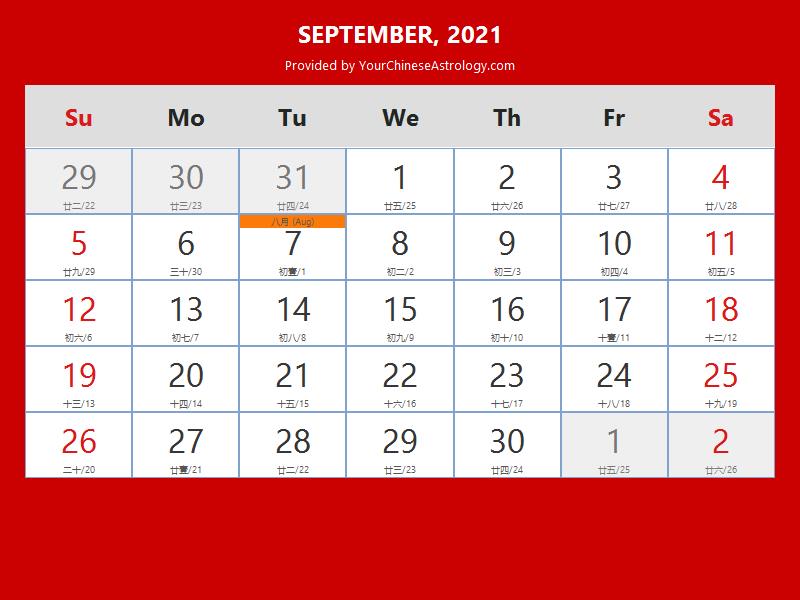 Chinese Calendar September 2021 Lunar Dates Auspicious Dates And Times