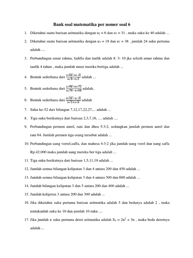Bank Soal Matematika Per Nomer Soal 6