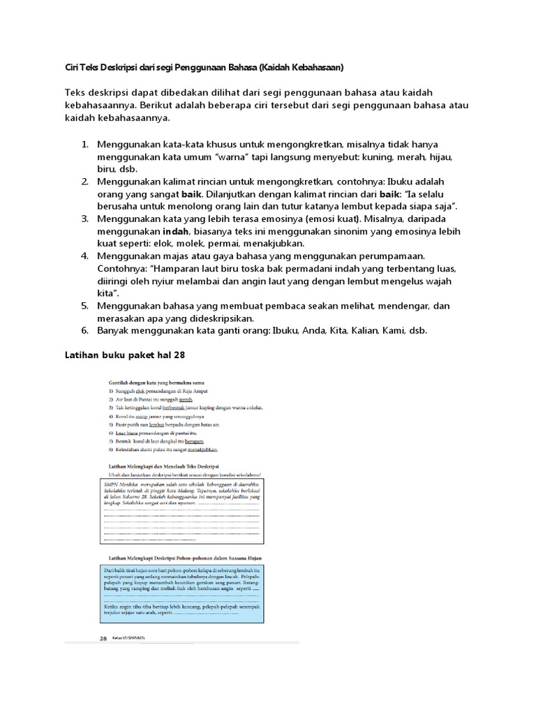 Ciri Teks Deskripsi Dari Segi Penggunaan Bahasa Pdf