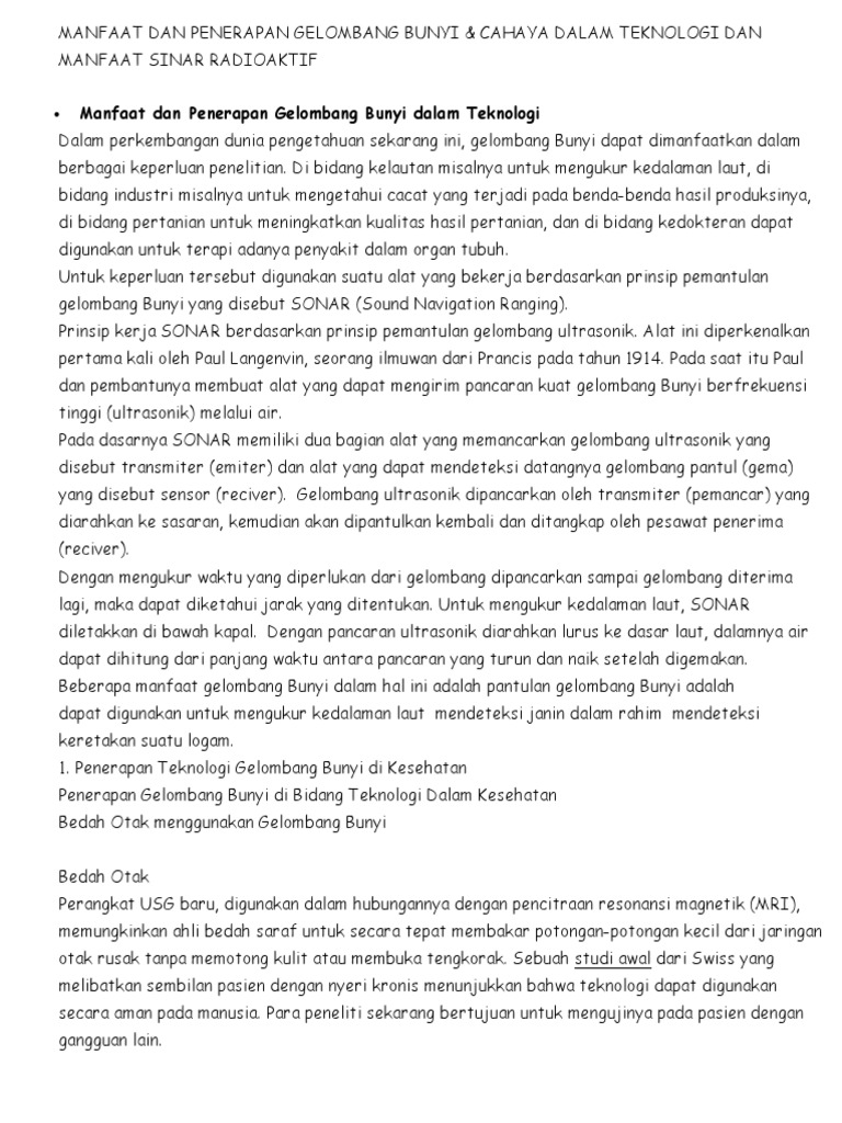 Jelaskan Pemanfaatan Gelombang Dalam Teknologi - Gelombang bunyi merupakan gelombang yang membujur yang di mana gelombang tersebut memerlukan medium dalam proses perambatannya. Pengamatan ultrasonik pada wanita hamil untuk.
