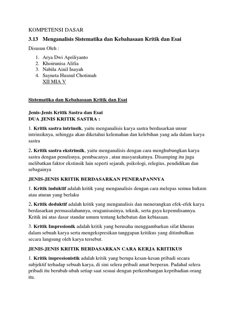 Sistematika Kritik Pdf