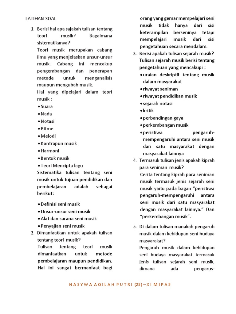Seni Musik Nasywa Aqilah 25 Xi Mipa 5 Pdf