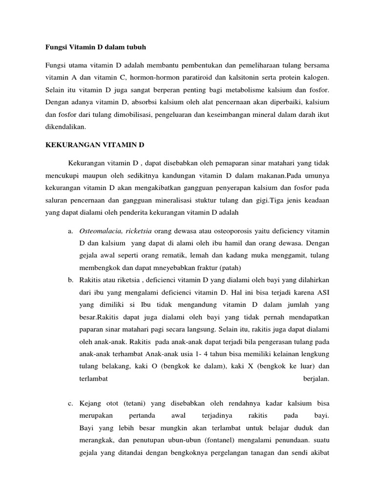 Lebih kurang 25 mmol kalsium dikonsumsi oleh manusia pada diet yang normal. Fungsi dari otot yaitu membantu pergerakan tubuh aliran darah dan menjalankan fungsi tubuh lainnya. DALAM TUBUH MANUSIA Vivi Triana Pendahuluan Vitamin merupakan nutrien organic yang dibutuhkan dalam jumlah kecil untuk berbagai fungsi biokimiawi dan yang umumnya tidak disintesis oleh tubuh sehingga harus dipasok dari makananVitamin yang pertama kali ditemukan adalah vitamin A dan B dan ternyata masing-masing larut dalam lemak dan larut.